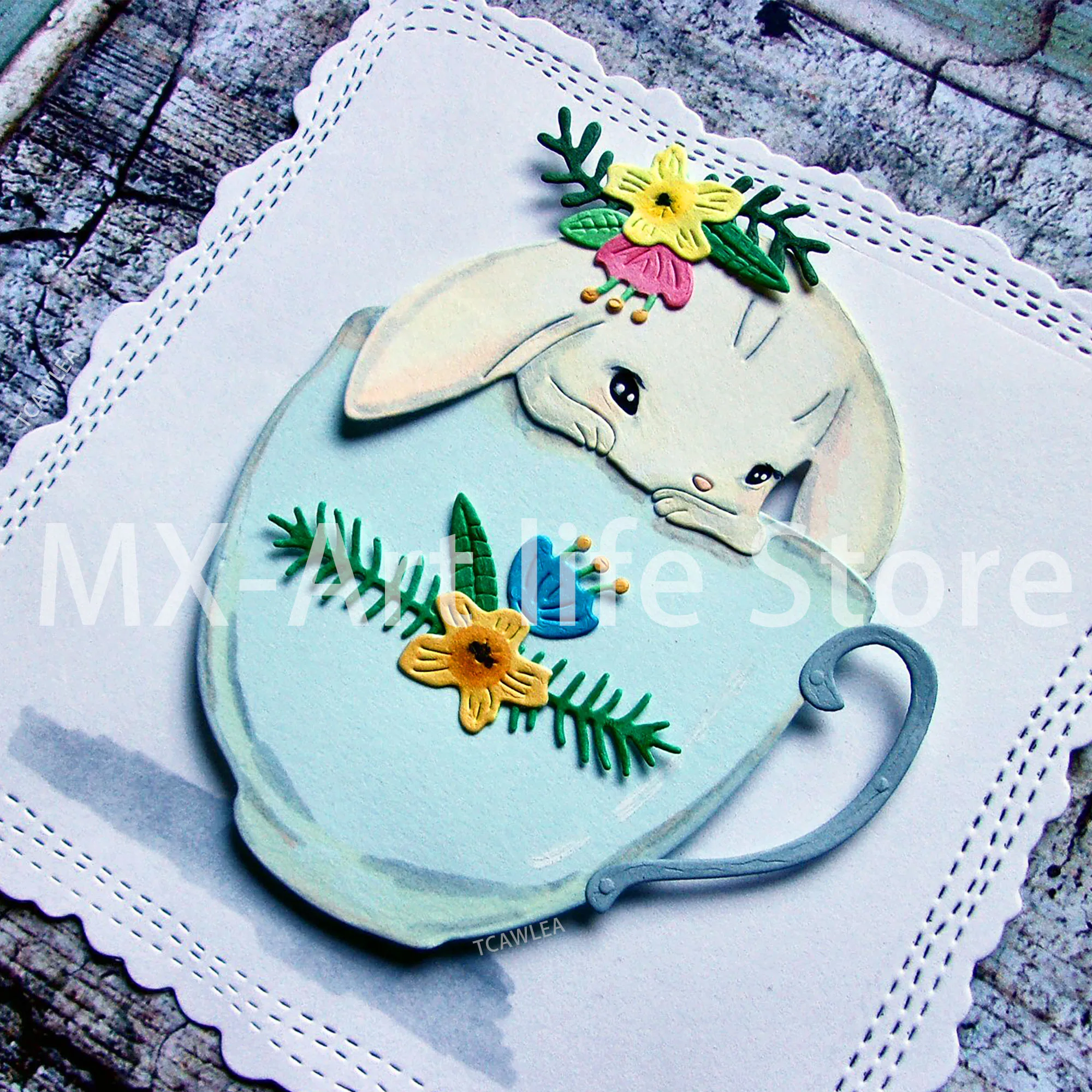 .image for Lovely Cup Bunny Rabbit Metal Cutting Dies Love Animal Dolls Stencil For DIY Scrapbooking Card Deco