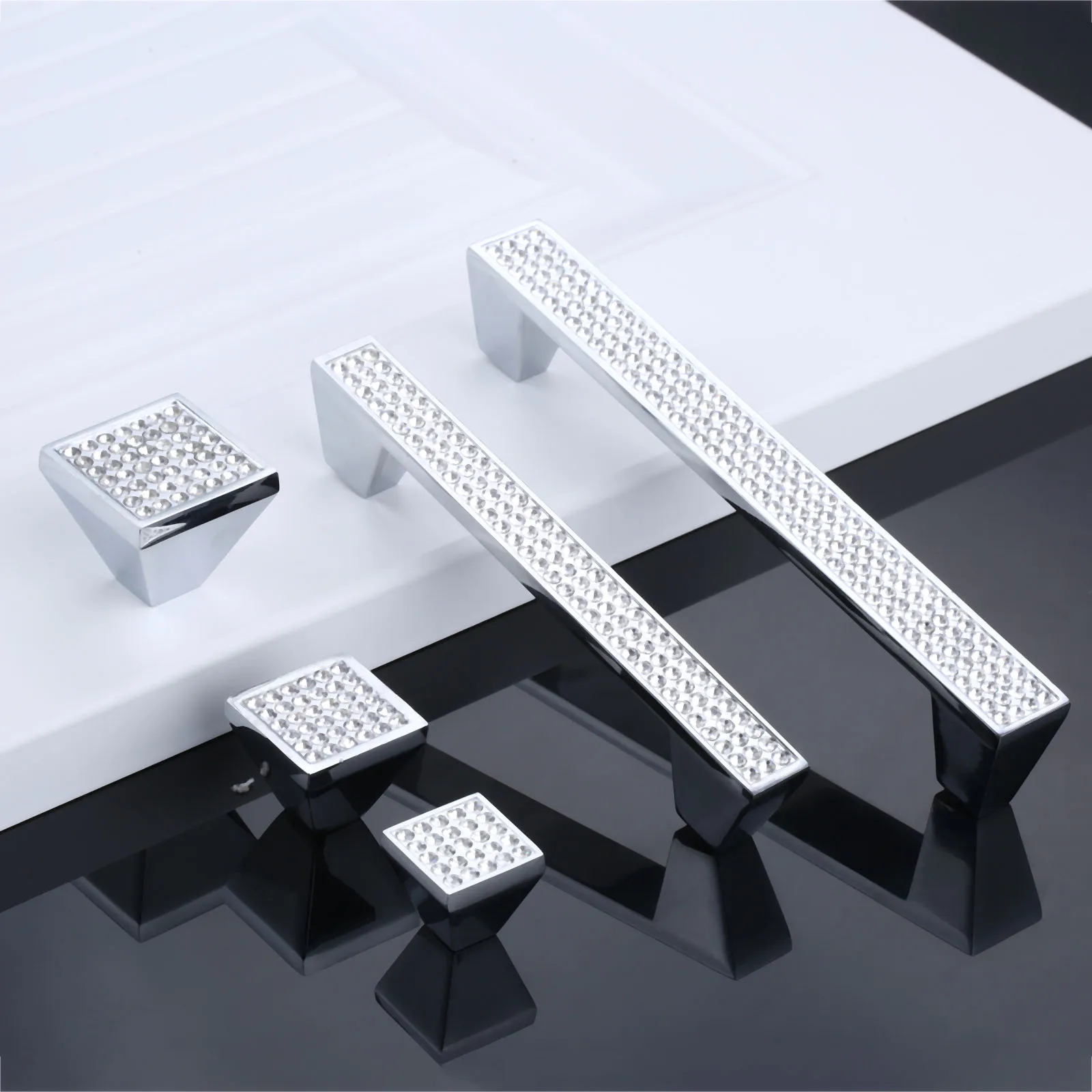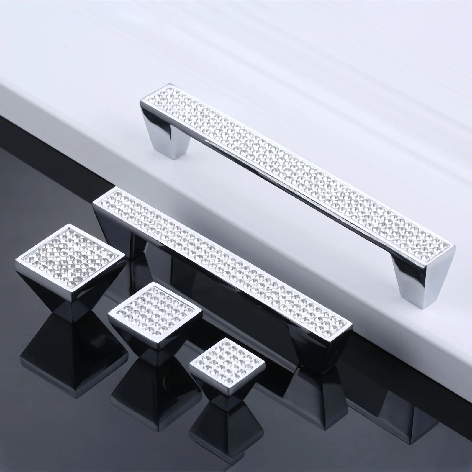 .image of DRELD 1Pc 20/25/30mm Diamond Crystal Glass Furniture Knob 96mm 128mm Rhinestone Cupboard Drawer Pul